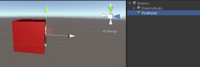 - עבור ה-Fire Point, צור GameObject חדש, הזז אותו בתוך מופע האויב החי והצב אותו מעט לפני המופע, ואז הקצה אותו למשתנה Fire Point: