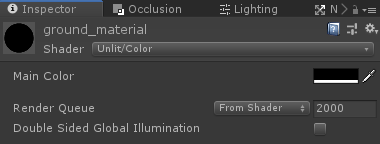 עבור ground_material שנה את ההצללה שלו ל- Unlit/Color ושנה את הצבע הראשי לשחור: