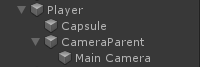 - צור GameObject חדש ושם לו "CameraParent" והזז אותו בתוך האובייקט "Player", שנה את מיקומו ל- (0, 1.64, 0)