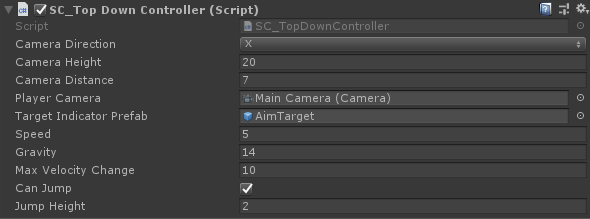 - ולבסוף, הקצה את המשתנים "Player Camera" ו-"Target Indicator Prefab" ב-SC_TopDownController