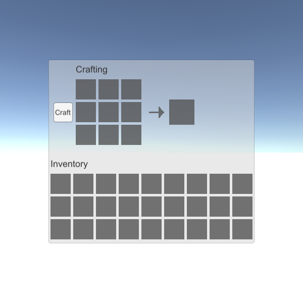 - שנה את שם האובייקט הראשון ל-"CraftingSlots" ושנה את ערכי ה-RectTransform שלו ל-"יישור למעלה משמאל" Pivot X: 0 Pivot Y: 1 Pos X: 50 Pos Y: -35 רוחב: 140 גובה: 140). אובייקט זה יכיל חריצי יצירה.