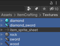 - ב-SC_ItemCrafting שנה את גודל הפריטים ל-5 והקצה כל ספרייט למשתנה Item Sprite.
