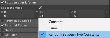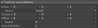 - במערכת החלקיקים אפשר את המודולים הבאים: פליטה, צורה, מהירות לאורך חיים, צבע לאורך חיים, גודל לאורך חיים , סיבוב לאורך החיים, כוחות חיצוניים, מרנדר.